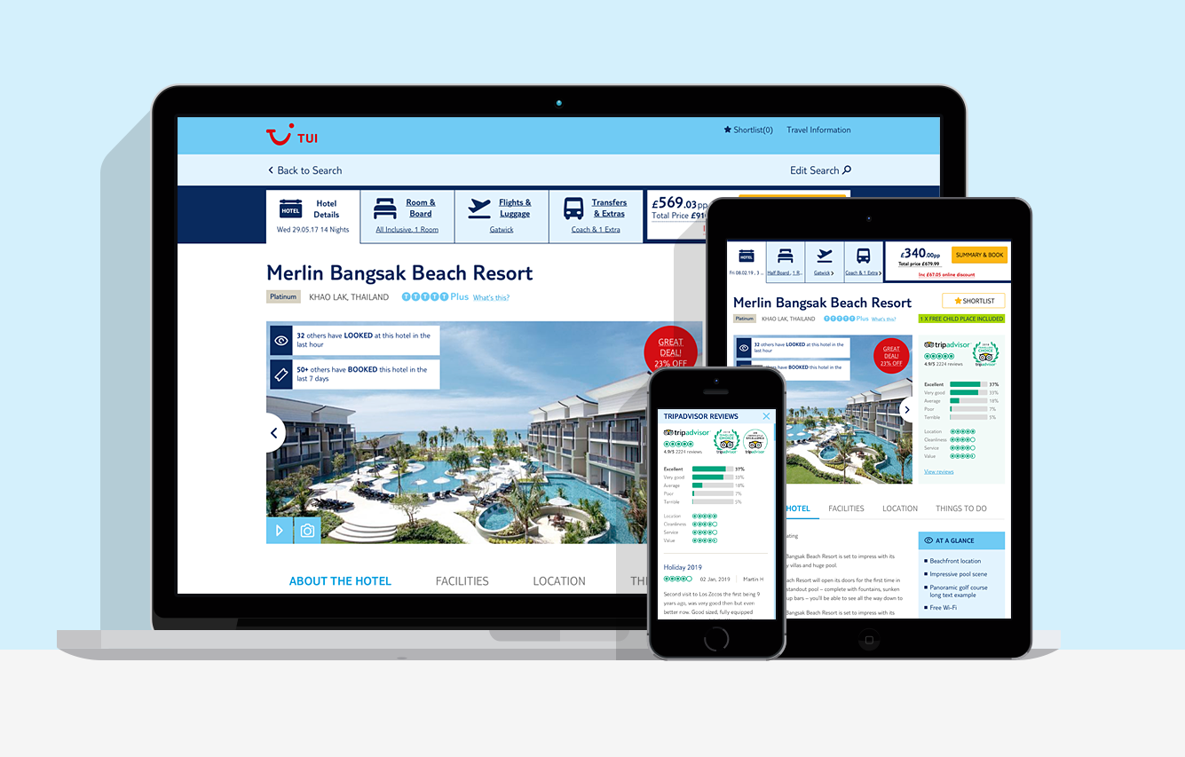 TUI unit details page website redesign, full responsiveness ensured the display remains effective and functional on all devices, with mobile having additional mobile specific customisations.